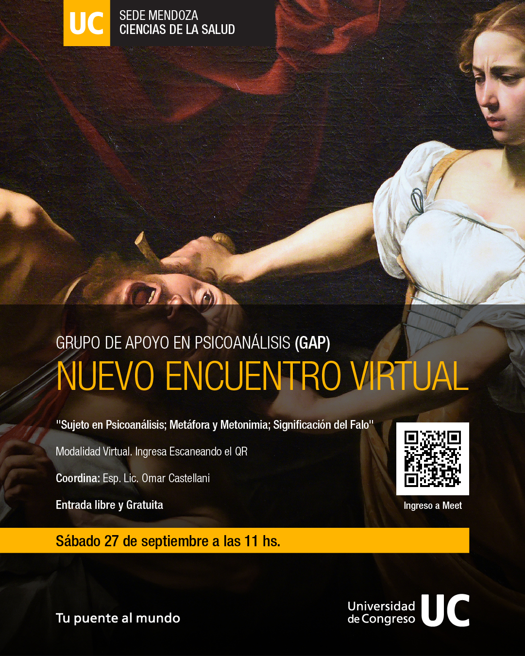La Facultad de Ciencias de la Salud invita a un nuevo encuentro presencial del Grupo de Apoyo en Psicoanálisis (GAP): “Sujeto en Psicoanálisis; Metáfora y Metonimia; Significación del Falo”