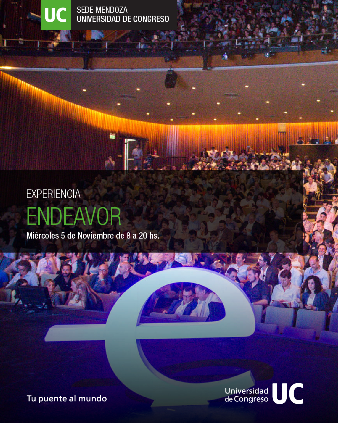 La Universidad de Congreso invita estudiantes, graduados, docentes y emprendedores a participar de la Experiencia Endeavor Cuyo 2025, el encuentro de emprendedores más importante del país, que se realizará el miércoles 5 de noviembre en la Nave Cultural de Mendoza (Las Cubas 201, Ciudad).
