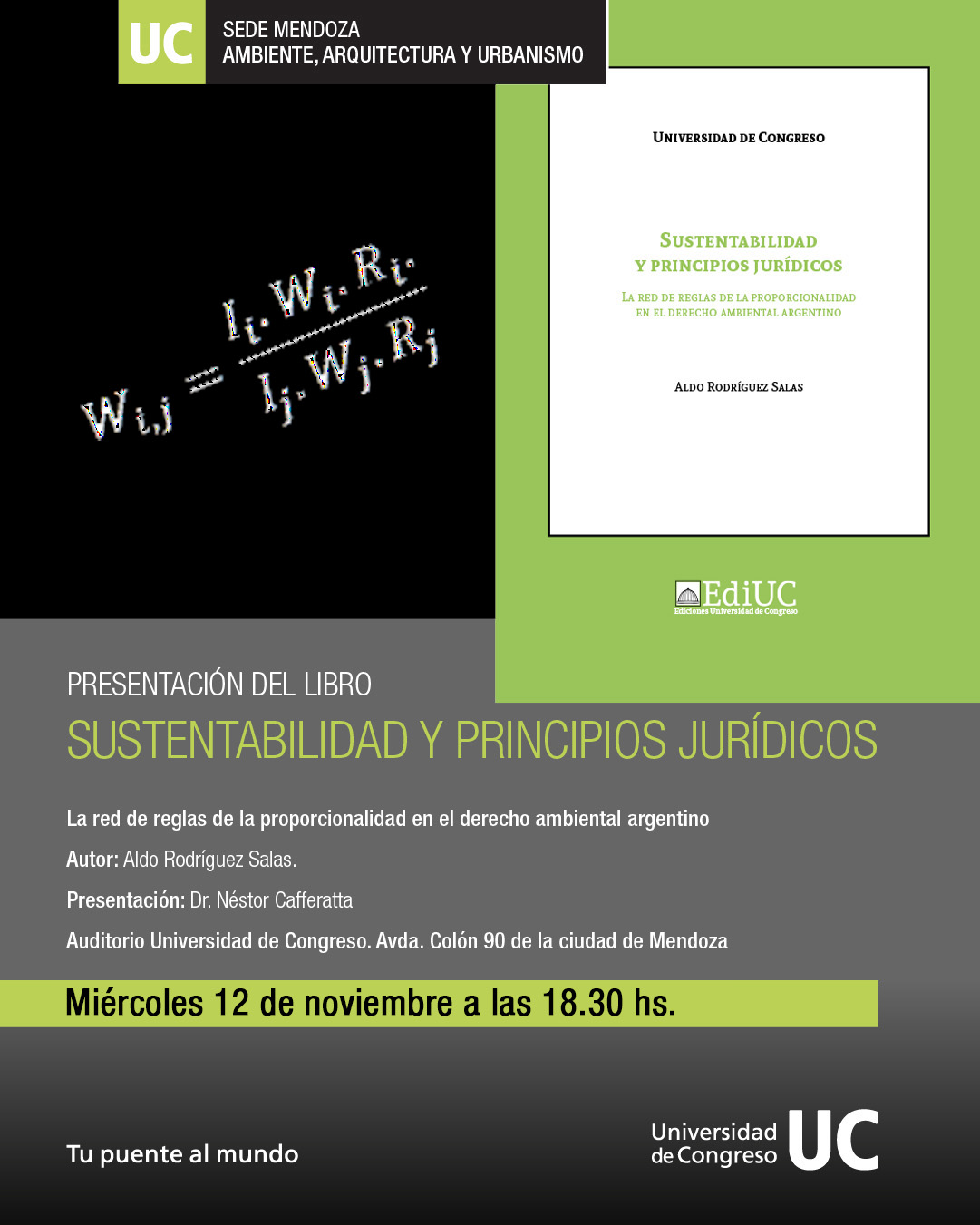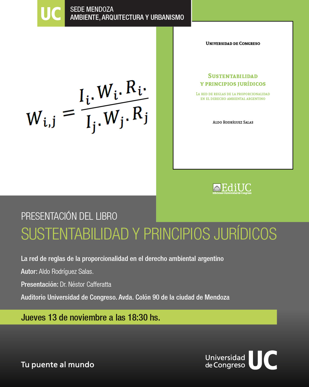 La Universidad de Congreso invita a la comunidad académica y al público interesado a la presentación del libro “Sustentabilidad y Principios Jurídicos. La red de reglas de la proporcionalidad en el derecho ambiental argentino”, de Aldo Rodríguez Salas.