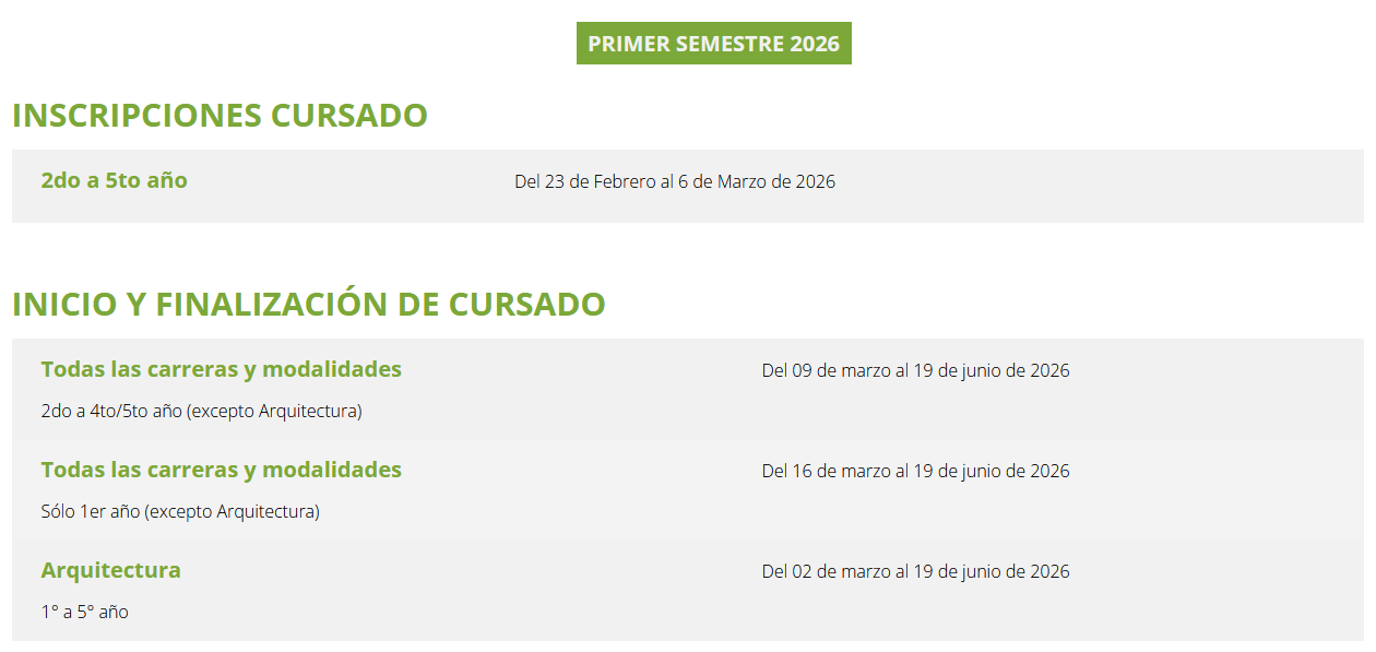 Desde el 23 de febrero podrás inscribirte al cursado. El inicio de cursado será el 9 de marzo, de igual manera deberán corroborar las fechas en las distintas carreras y sedes.
