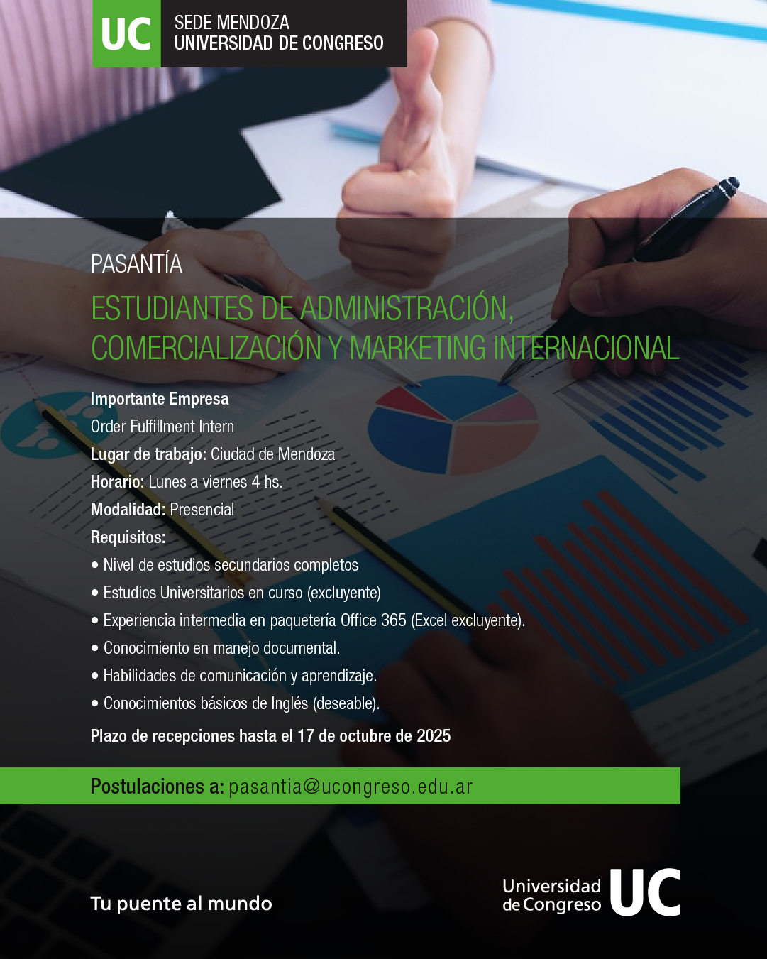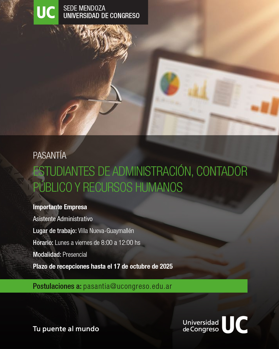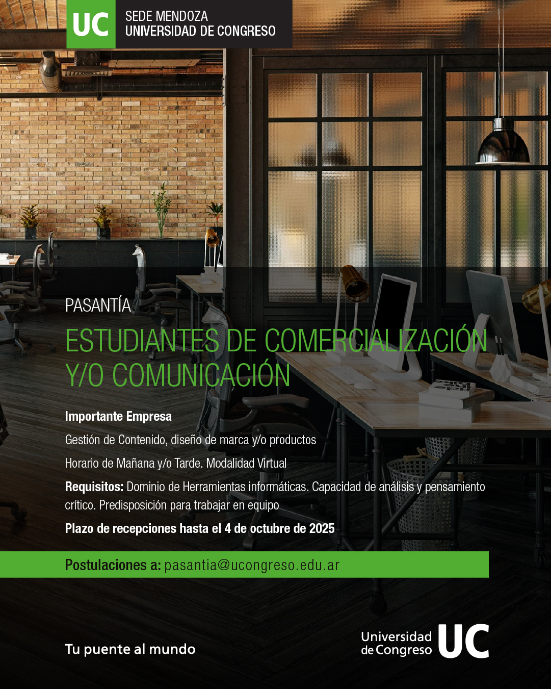 El área de Pasantías trae las ofertas para estudiantes y graduados de la Universidad de Congreso.