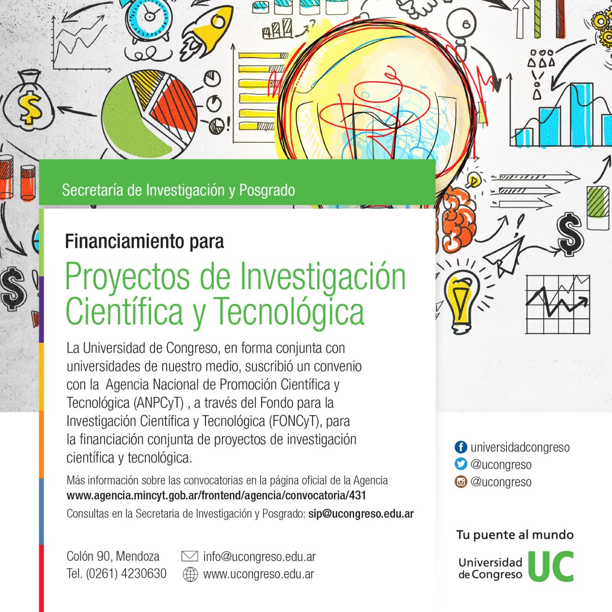 Financiamiento para Proyectos La Universidad de Congreso, en forma conjunta con universidades de nuestro medio, suscribió un convenio con la Agencia Nacional de Promoción Científica y Tecnológica (ANPCyT) , a través del Fondo para la Investigación Científica y Tecnológica (FONCyT), para la financiación conjunta de proyectos de investigación científica y tecnológica en las siguientes áreas: – Arquitectura Sustentable – Ciencias […]